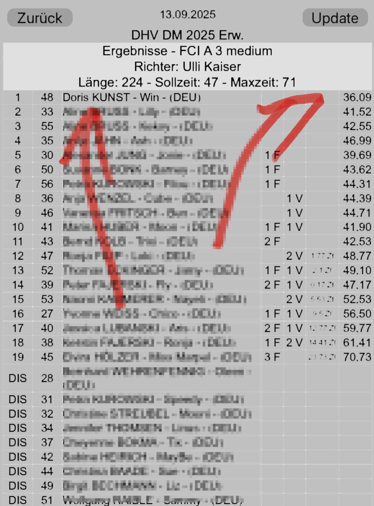 Nach dem Sieg bei der Deutschen Meisterschaft 2019 mit ihrer May ist Do nun ein weiterer Coup gelungen. Am 13./14. September 2025 wurde sie mit ihrer Mini Aussie Hündin Win Deutsche Meisterin beim Deutschen Hundesportverband (DHV) in Bad Orb. Der DHV ist die Dachorganisation aller regionaler Hundesportverbände, wie beispielsweise auch des Hundesportverbandes Rhein-Main, dem unser Verein angehört.