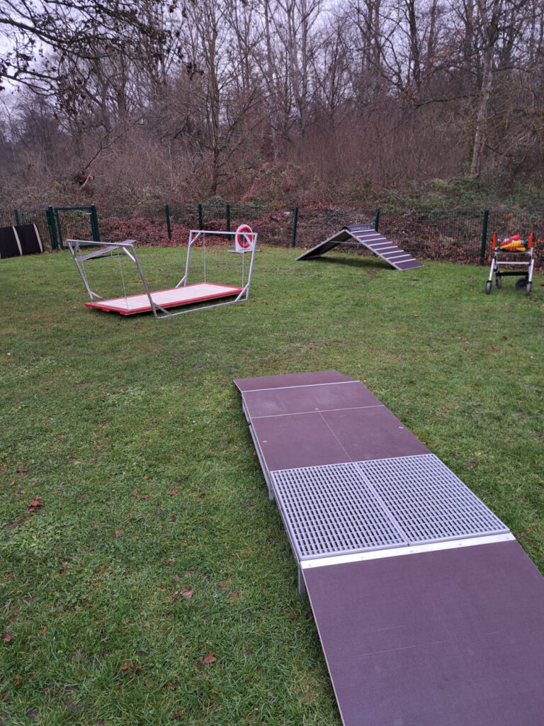 Jetzt war es also mal wieder an der Zeit. Die neuen Geräte wurden gerade neu in Betrieb genommen. Sicher ist es keine Überraschung, dass bei einem „Sportverein der Hundefreunde“ auch schon in der Welpenstunde die Übungsgeräte vom Hundesport inspiriert sind. Wobei aber darauf geachtet wird, dass die Geräte alle sozusagen in der „Zwergenversion“ geliefert werden, speziell auf die Fähigkeiten und das körperliche Entwicklungsstadium der Welpen angepasst.